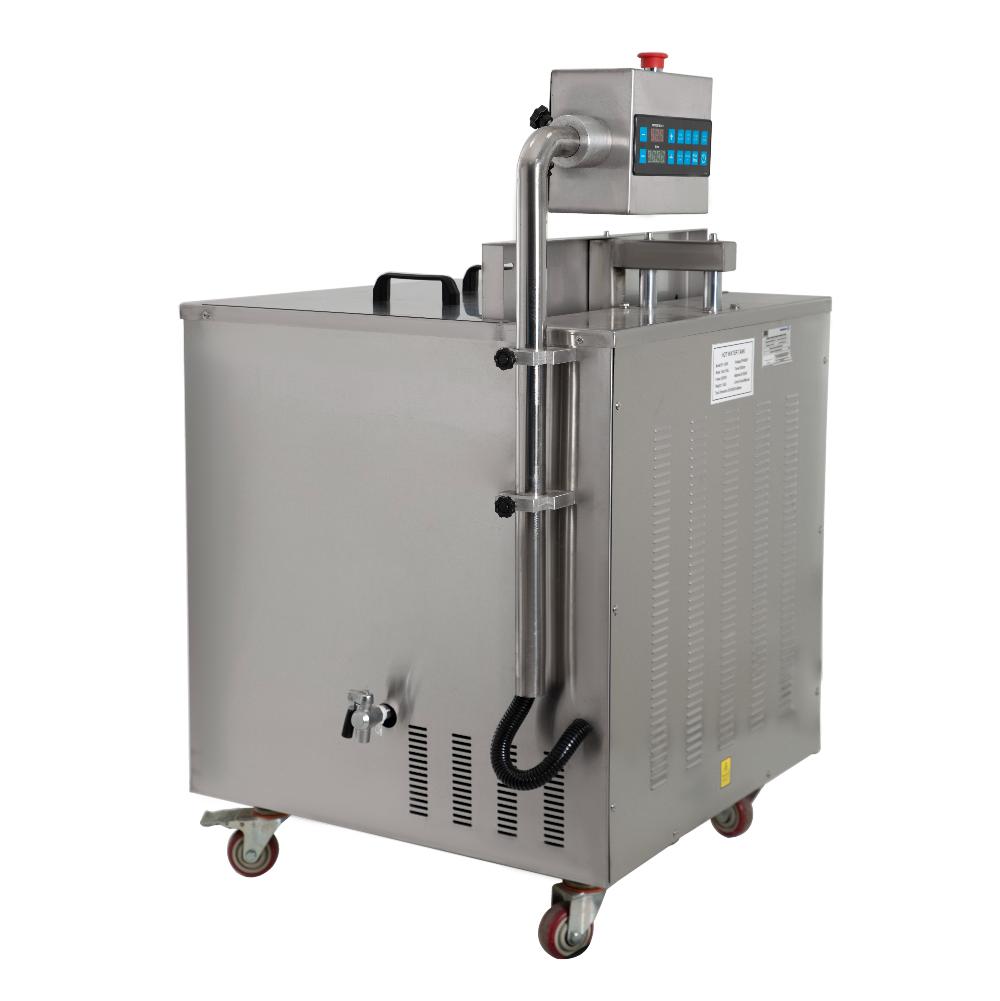 - Затем упаковка с продуктом помещается на платформу термотанка и опускается в ёмкость с горячей водой на 2–3 секунды. Этого времени достаточно для усаживания пакета.