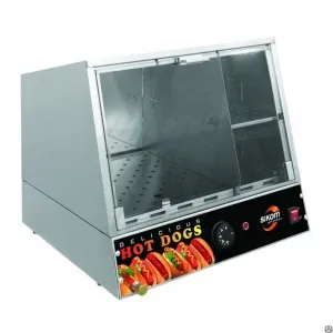 предназначен для приготовления сосисок, сарделек, колбасок и подогрева булочек, а также может использоваться для приготовления на пару и варки различных блюд. Гриль выполнен в виде «парового домика», который сверху закрывается съемной крышкой. Корпус гриля выполнен в виде герметичной ванны с двумя стеклянными стенками.Внутренний объем разделен на две части: первый — для приготовления сосисок, второй — для подогрева булочек. Для регулирования уровня пара на панели управления расположен удобный переключатель. Все детали гриля выполнены из нержавеющей стали и пищевого алюминия, а яркое внешнее исполнение подаст продукт в наиболее выгодном виде.